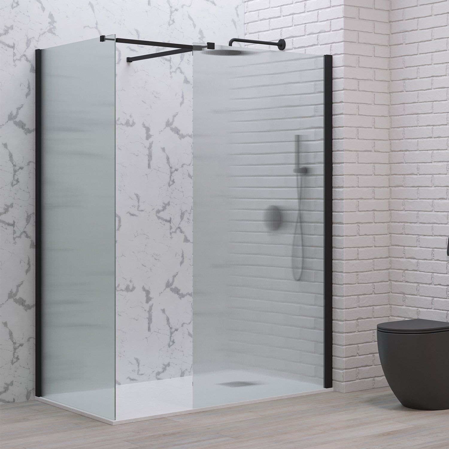 Σταθερά διαχωριστικά ντουζιέρας με flute κρύσταλλο WALKIN 2 Black KARAG 80x200cm