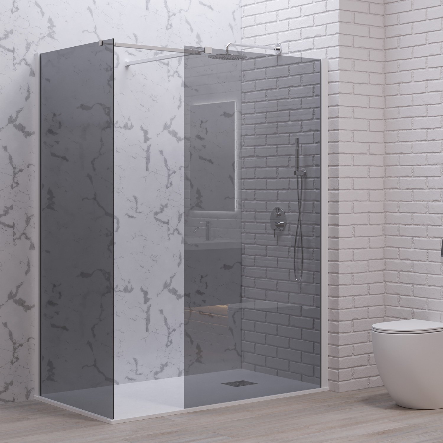 Σταθερά διαχωριστικά ντουζιέρας με fume κρύσταλλο WALKIN 2 White KARAG 140x200cm