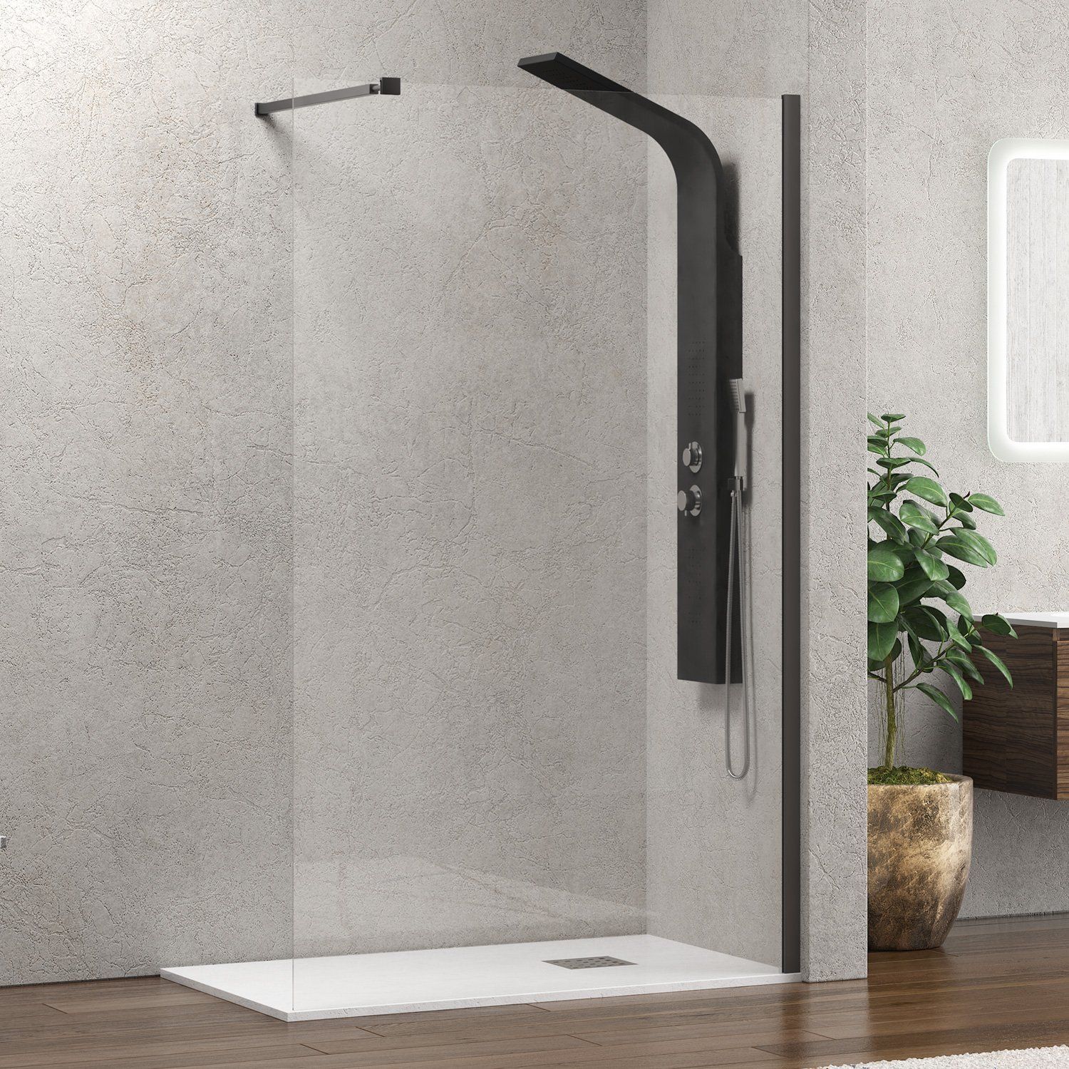 Σταθερό διαχωριστικό ντουζιέρας με διάφανο κρύσταλλο WALKIN 1 Gun Metal KARAG 170x200cm