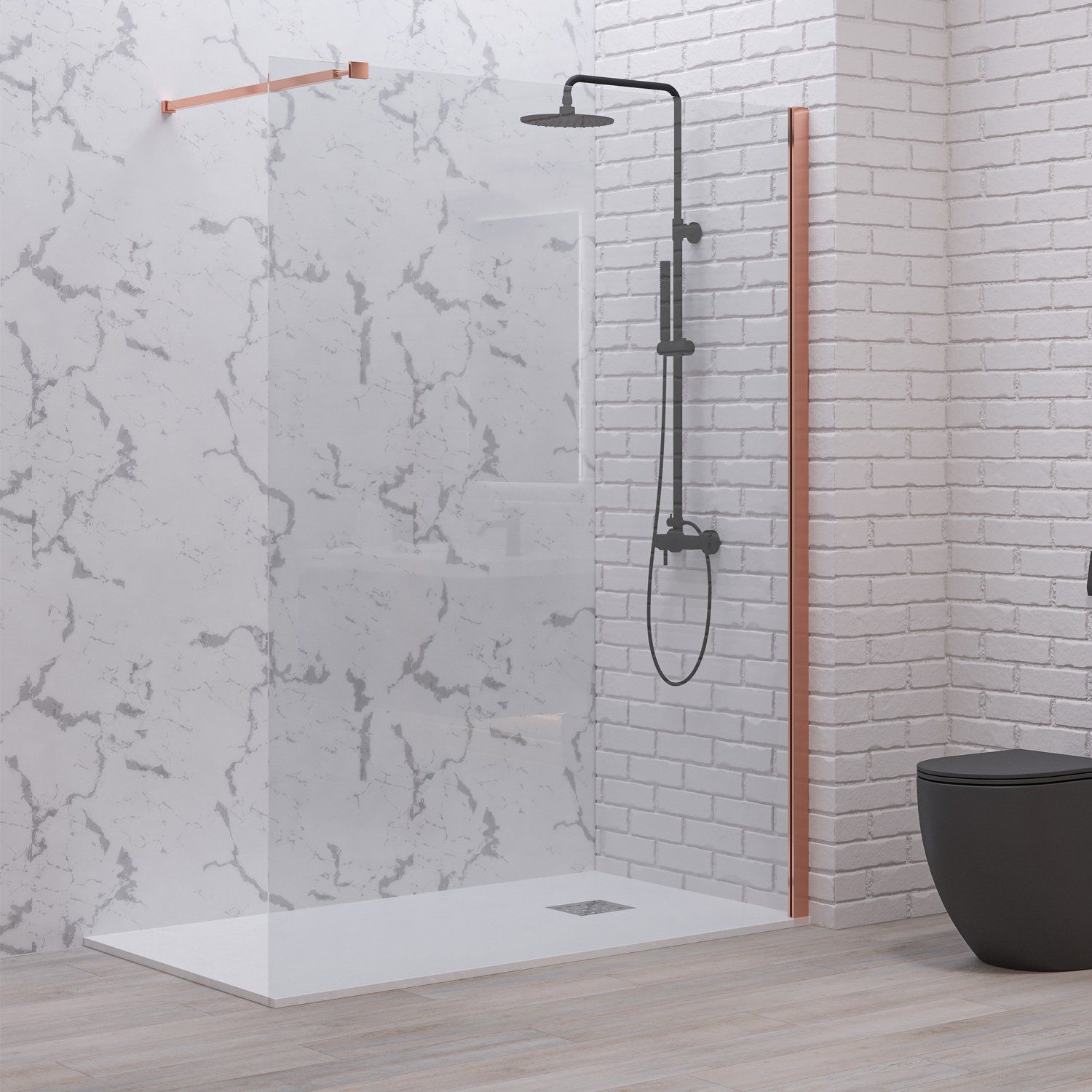 Σταθερό διαχωριστικό ντουζιέρας με διάφανο κρύσταλλο WALKIN 1 Rose Gold KARAG 70x200cm