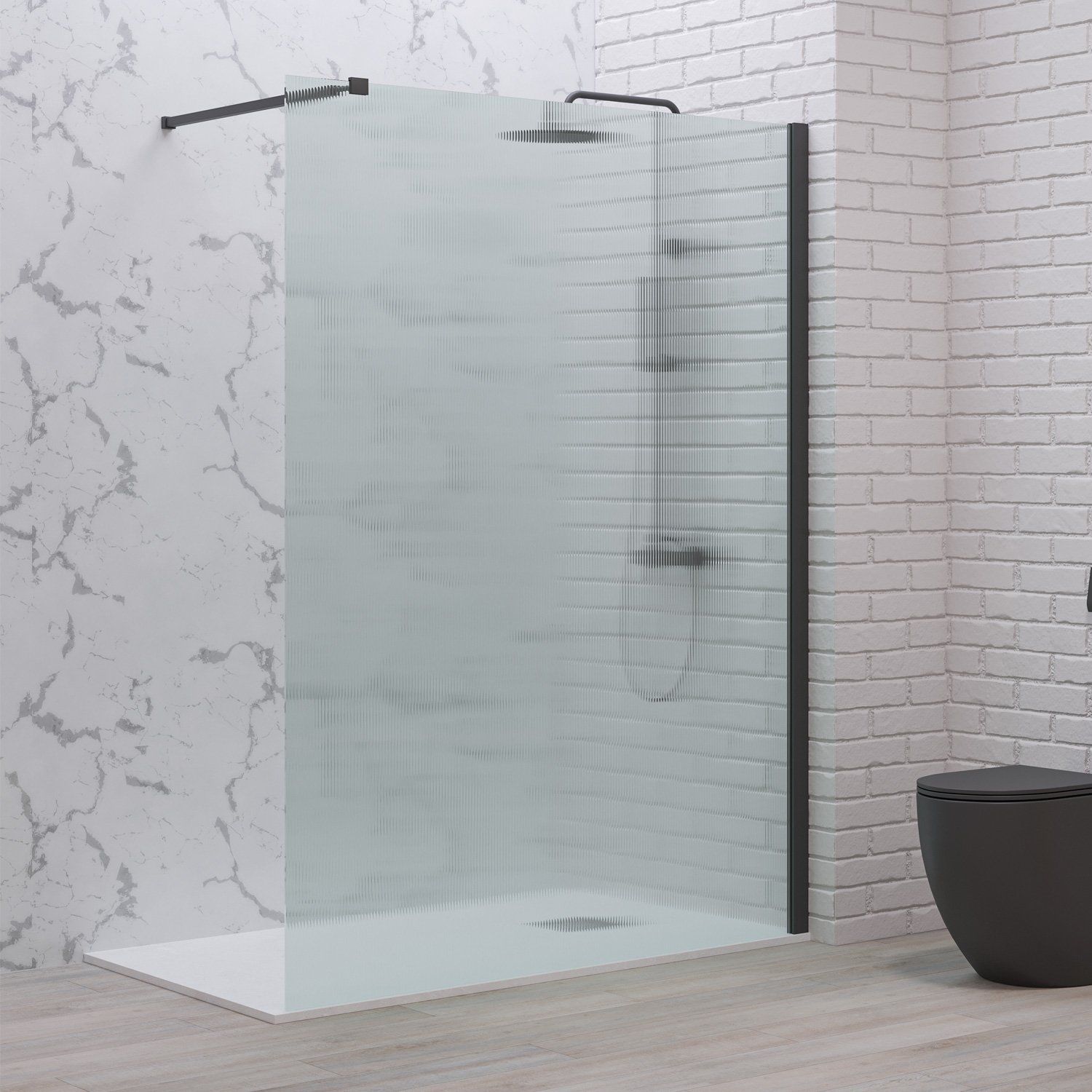 Σταθερό διαχωριστικό ντουζιέρας με flute κρύσταλλο WALKIN 1 Black KARAG 90x200cm