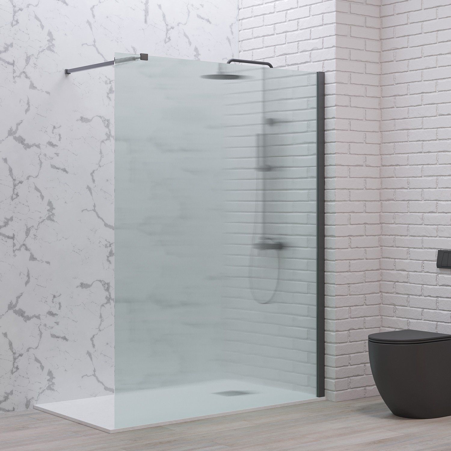 Σταθερό διαχωριστικό ντουζιέρας με flute κρύσταλλο WALKIN 1 Gun Metal KARAG 80x200cm