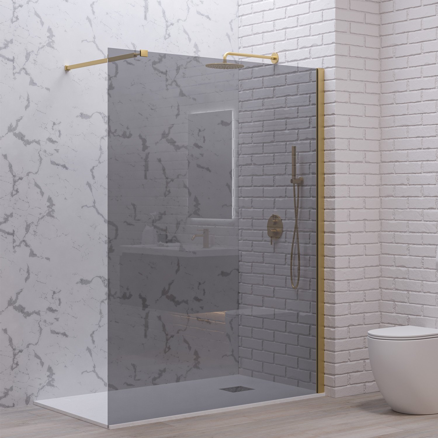 Σταθερό διαχωριστικό ντουζιέρας με fume κρύσταλλο WALKIN 1 Gold KARAG 140x200cm