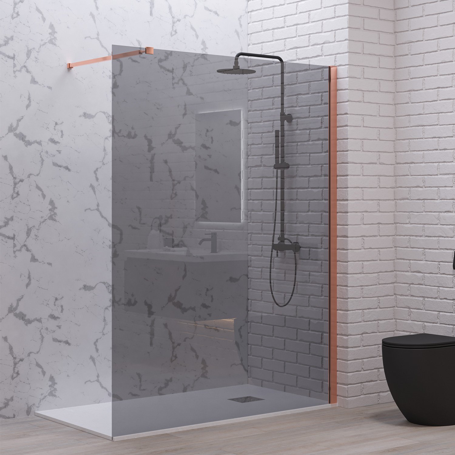 Σταθερό διαχωριστικό ντουζιέρας με fume κρύσταλλο WALKIN 1 Rose Gold KARAG 140x200cm