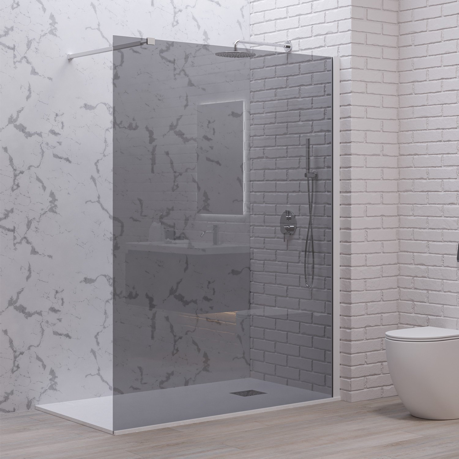 Σταθερό διαχωριστικό ντουζιέρας με fume κρύσταλλο WALKIN 1 White KARAG 140x200cm