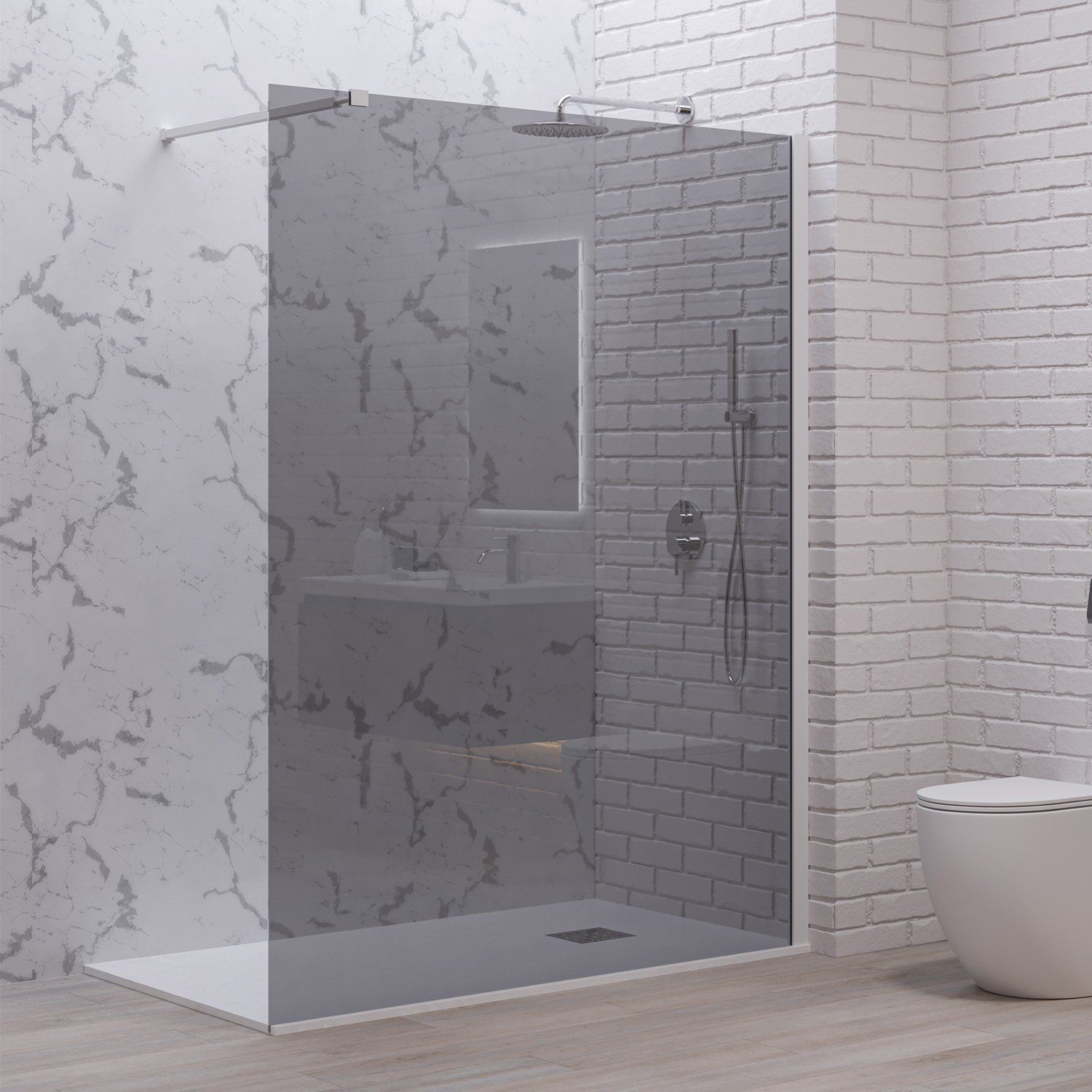Σταθερό διαχωριστικό ντουζιέρας με fume κρύσταλλο WALKIN 1 White KARAG 90x200cm