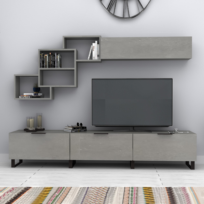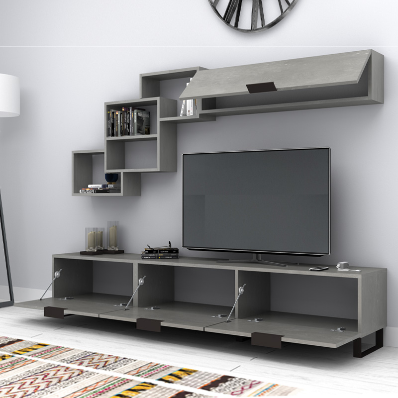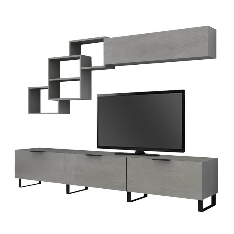 Σύνθεση τηλεόρασης Heydar Megapap χρώμα γκρι σκυροδέματος 210x35x40εκ.
