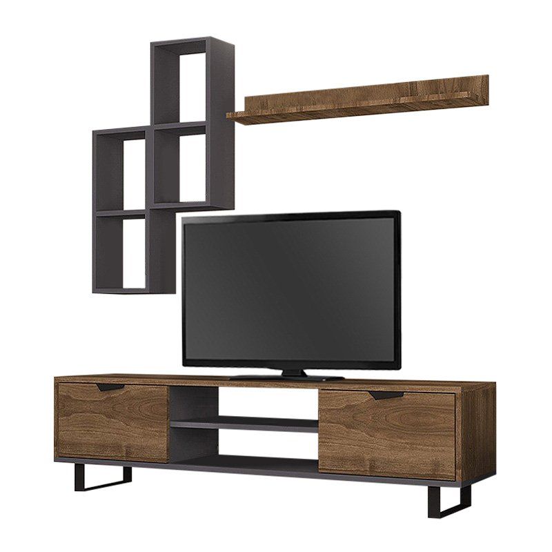 Σύνθεση τηλεόρασης Lonsa Megapap χρώμα καρυδί – ανθρακί 160x35x40εκ.