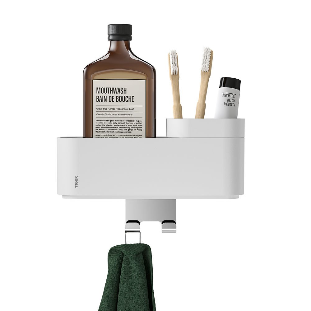 Γάντζος για την πετσέτα σας; Βουρτσίζετε τα δόντια σας στο ντους; Κανένα πρόβλημα. Αυτός ο δίσκος αποθήκευσης από τη σειρά 2-Store είναι η απάντησή σας σε όλα τα προβλήματα αποθήκευσης. Προσαρμοσμένο στις ανάγκες του μπάνιου σας: πολυλειτουργικό και ιδιοφυές όσον αφορά την αποθήκευση. Πρακτικό και μοντέρνο σε λευκό.