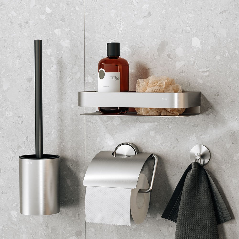 Less is more! Αυτή η βουρτσισμένη θήκη ρολού τουαλέτας από ανοξείδωτο ατσάλι με κάλυμμα από την Tiger Ace το αποδεικνύει. Το στρογγυλό σχήμα σας κάνει να κοιτάξετε δύο φορές. Απλό και στιβαρό, που ταιριάζει στο σύγχρονο πνεύμα. Χάρη στην αυτοκόλλητη ταινία 3M, μπορείτε εύκολα να συνδέσετε το βραχίονα σε οποιαδήποτε λεία επιφάνεια. Το κάλυμμα είναι επίσης εύκολο να αφαιρεθεί για να στερεωθεί ο βραχίονας με βίδες μετά. Βολικό, σωστά; Το Ace είναι η λύση σας για μια κομψή τουαλέτα.