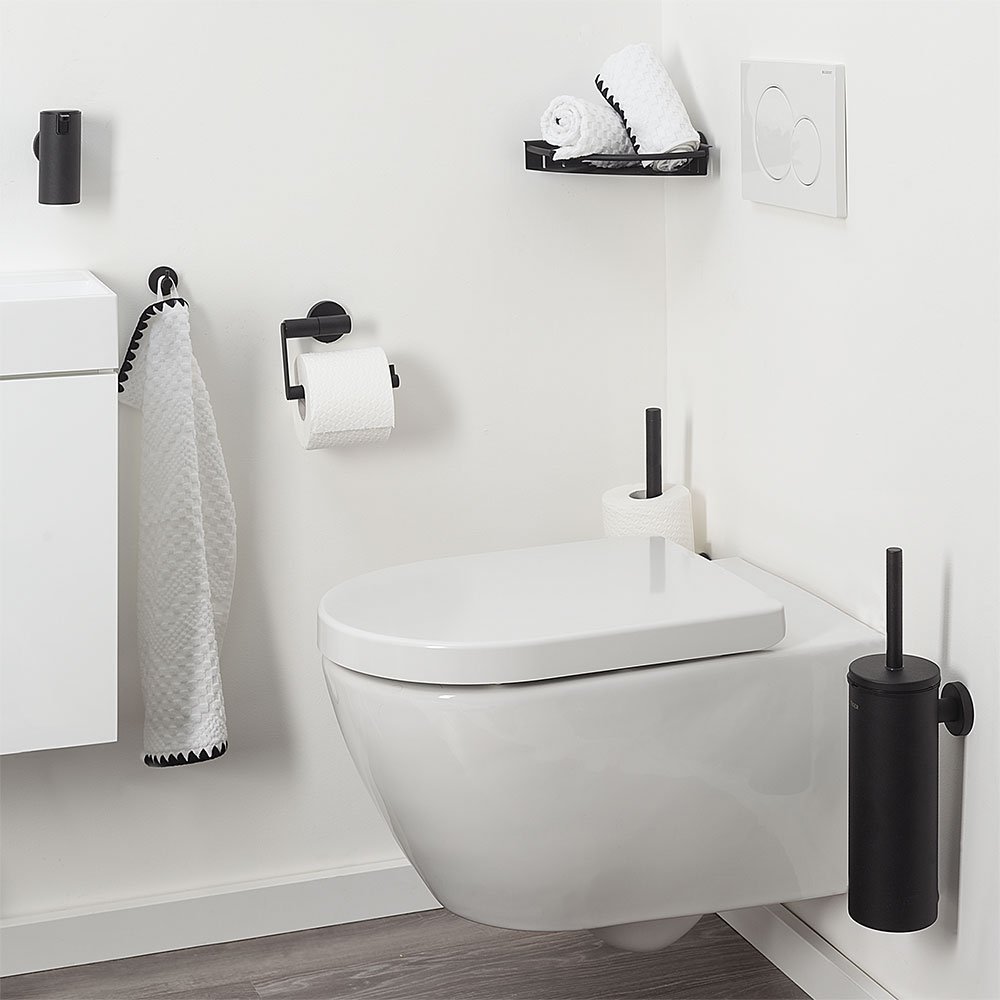 Προσφέροντας χώρο για δύο ρολά χαρτιού υγείας, αυτή η εφεδρική θήκη ρολού τουαλέτας της σειράς Tiger Boston διαθέτει ματ μαύρο φινίρισμα. Αυτό το αξεσουάρ σάς επιτρέπει να κρατάτε επιπλέον ρολά χαρτιού υγείας κοντά σας, δίνοντας στην τουαλέτα σας μια πινελιά κομψότητας, διασφαλίζοντας παράλληλα ότι το χαρτί υγείας είναι πάντα διαθέσιμο. Η εφεδρική θήκη ρολού τουαλέτας είναι εύκολο να τοποθετηθεί στην πλάκα τοίχου, κρύβοντας το υλικό στερέωσης (περιλαμβάνεται) για μια κομψή εμφάνιση. Η σειρά Boston περιλαμβάνει μια μεγάλη ποικιλία από άλλα αξεσουάρ για το μπάνιο και την τουαλέτα, όλα όμορφα συνδυασμένα.
