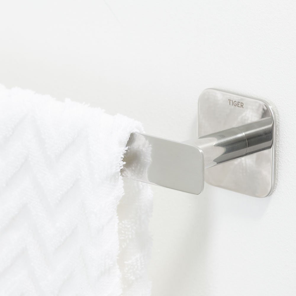 Ένα εκλεκτικό μείγμα τετράγωνου και στρογγυλού. Αυτά τα δύο σχήματα συνδυάζονται όμορφα με αυτή τη σχάρα πετσετών από την Tiger Colar, δημιουργώντας μια εκλεπτυσμένη εμφάνιση. Αυτή η σχάρα μπορεί να τοποθετηθεί πλήρως με ισχυρή, διπλής όψης ταινία 3M και μπορεί να υποστηρίξει έως και 2 κιλά. Έχουμε την μοντέρνα κρεμάστρα πετσετών, έχετε τις αντίστοιχες πετσέτες;