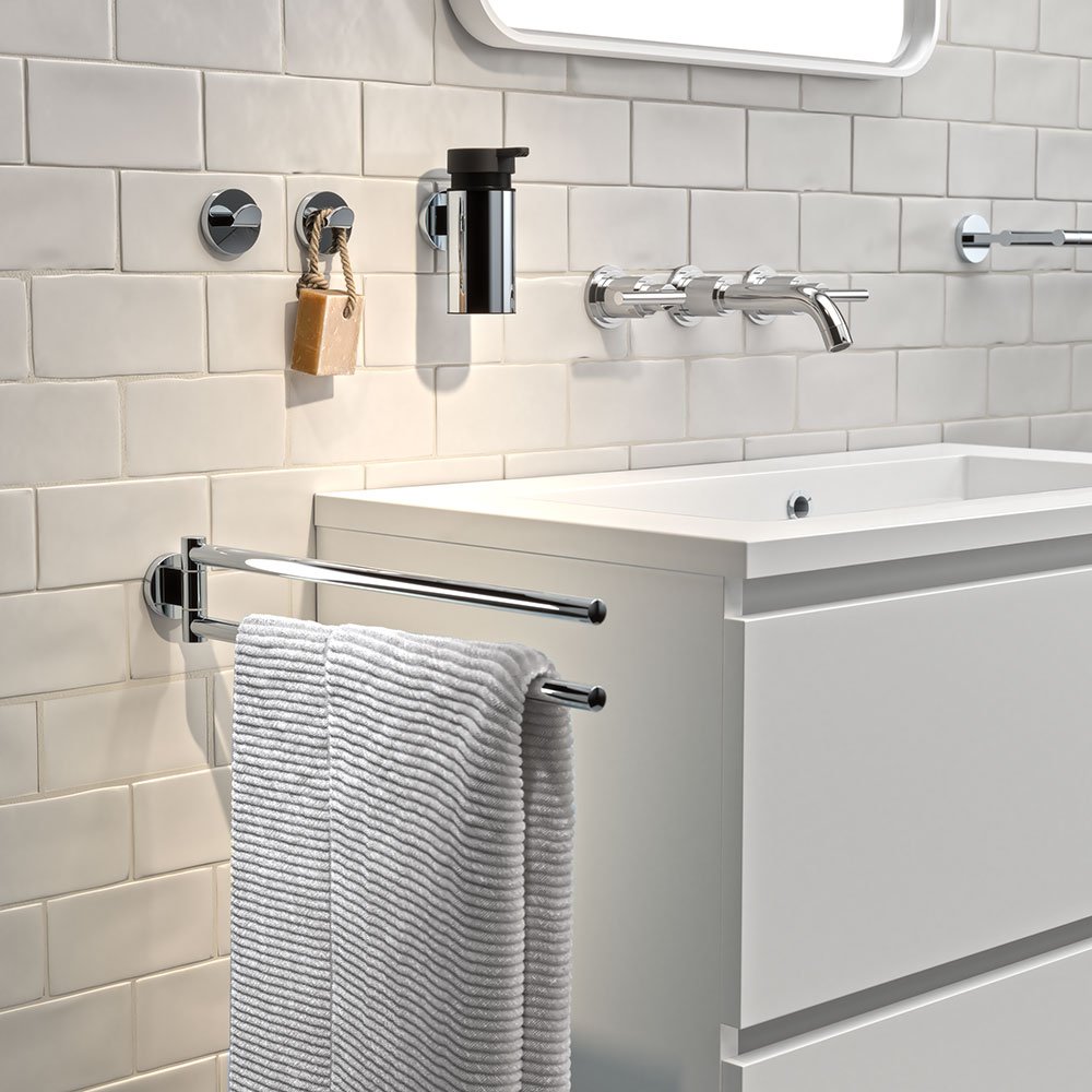 Η κρεμάστρα πετσετών Tiger Noon διαθέτει χρωμιωμένο φινίρισμα και δύο βραχίονες, καθένας από τους οποίους μπορεί να υποδεχτεί μία πετσέτα κανονικού μεγέθους. Οι περιστρεφόμενοι βραχίονες επιτρέπουν τη βέλτιστη χρήση του χώρου γύρω από το νιπτήρα. Η σειρά Noon περιλαμβάνει μια μεγάλη ποικιλία από άλλα αξεσουάρ για το μπάνιο και την τουαλέτα, όλα όμορφα συνδυασμένα. Η σειρά Noon από την premium συλλογή της Tiger είναι μια πολυτελής σειρά αξεσουάρ όπου ο σχεδιασμός, η ποιότητα και η λειτουργικότητα συνδυάζονται χωρίς καμία παραχώρηση. Ο σχεδιασμός χαρακτηρίζεται από τη χρήση στρογγυλών σχεδίων με δυναμική εμφάνιση, γεγονός που προκαλεί την απρόσκοπτη ενσωμάτωση της σειράς στη διάταξη του μοντέρνου μπάνιου και τουαλέτας.