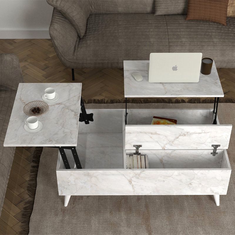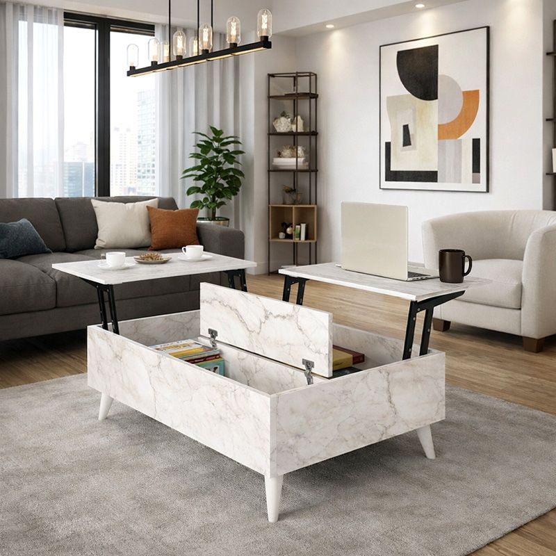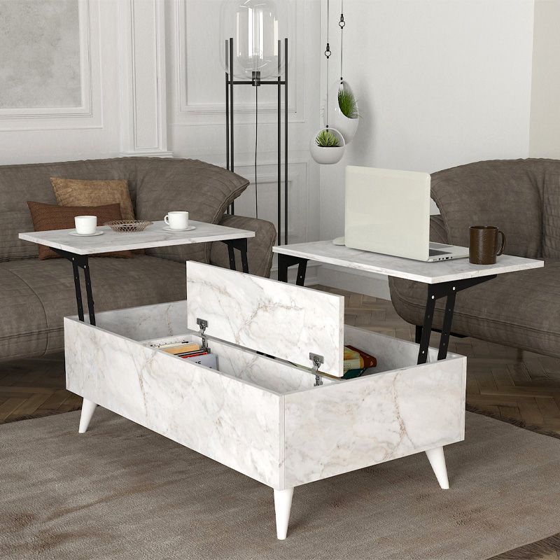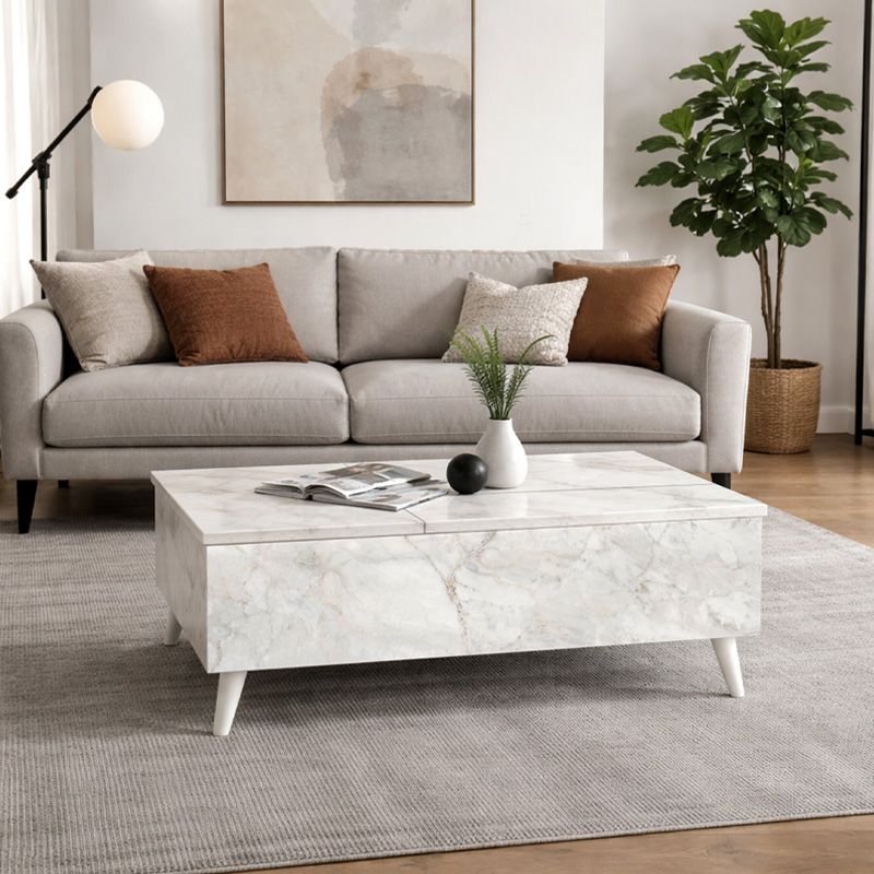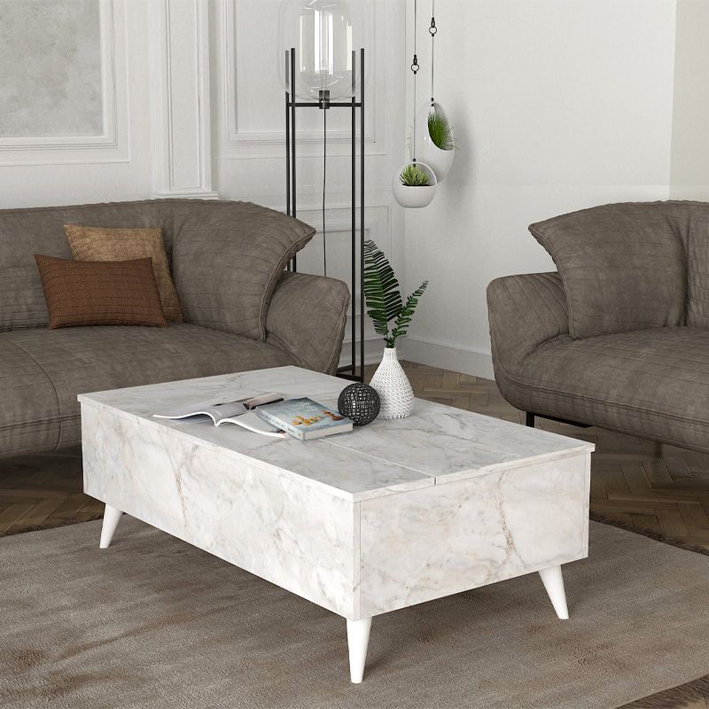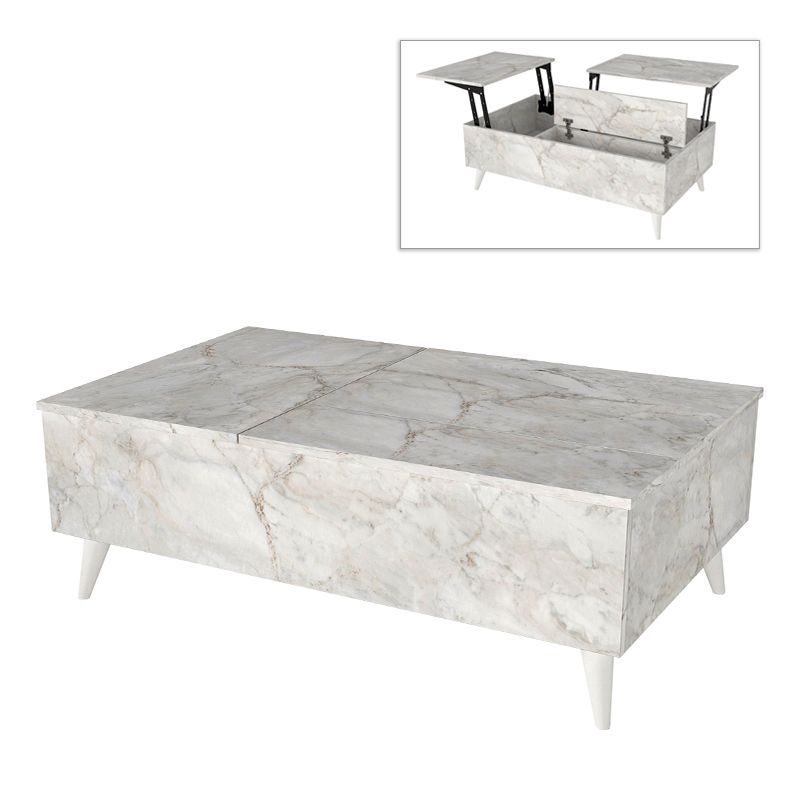 Τραπεζάκι σαλονιού Roy Megapap με σερβιτόρο χρώμα λευκό εφέ μαρμάρου 121x69x40εκ.