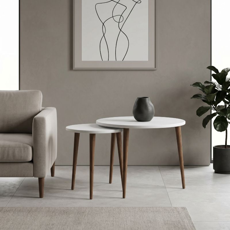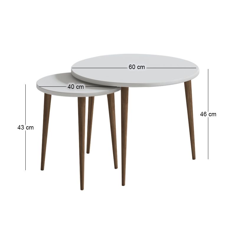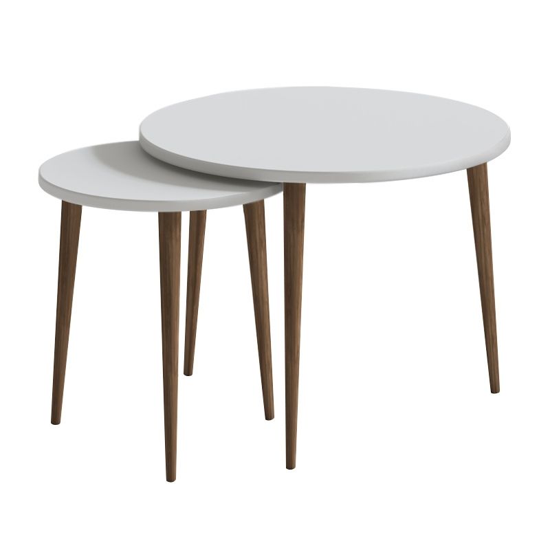 Τραπεζάκι σαλονιού σετ 2 τμχ Nola Megapap χρώμα λευκό Ø60×46εκ.