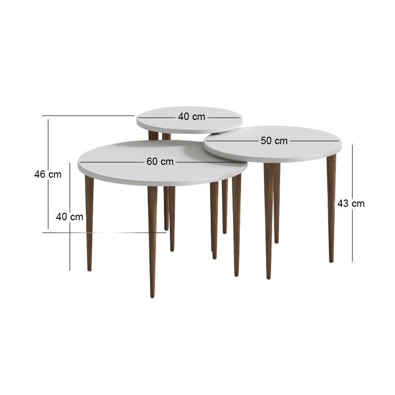 Τραπεζάκι σαλονιού σετ 3 τμχ Nola Megapap χρώμα λευκό Ø60×46εκ.