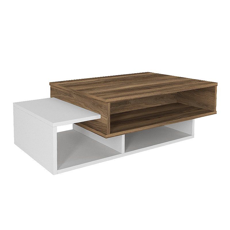 Τραπεζάκι σαλονιού Tab Megapap από μελαμίνη χρώμα λευκό – καρυδί 105x60x32εκ.