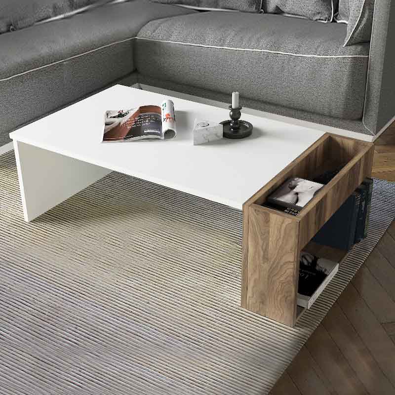 Τραπεζάκι σαλονιού View Megapap από μελαμίνη χρώμα λευκό – καρυδί 95x50x34εκ.