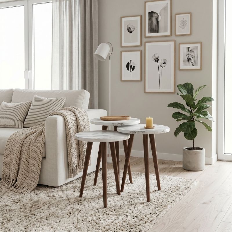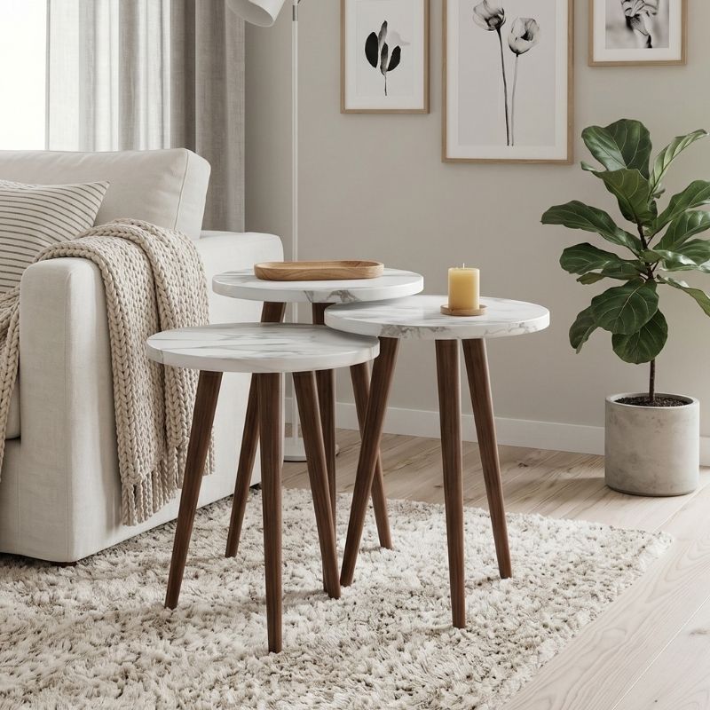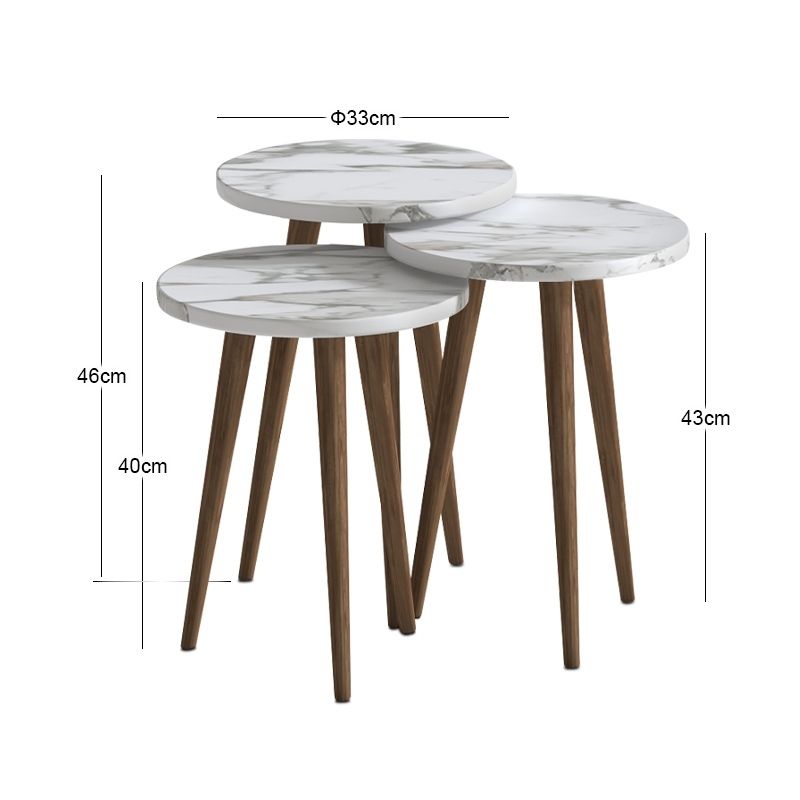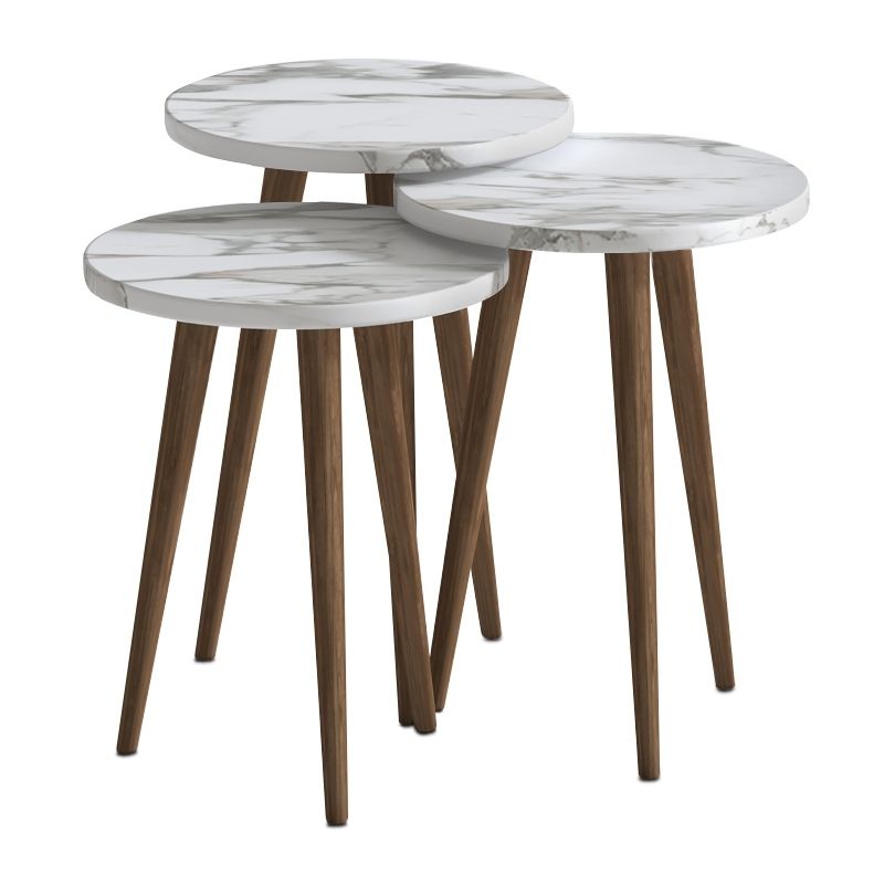 Τραπεζάκι βοηθητικό σετ 3 τμχ Cruz Megapap χρώμα λευκό εφέ μαρμάρου Ø33×46εκ.