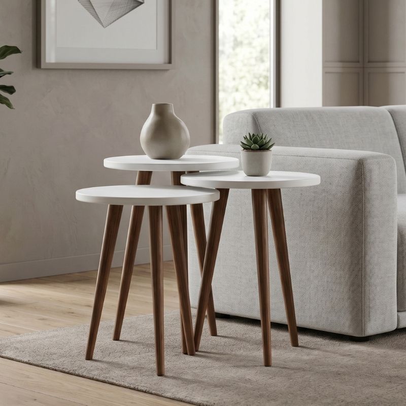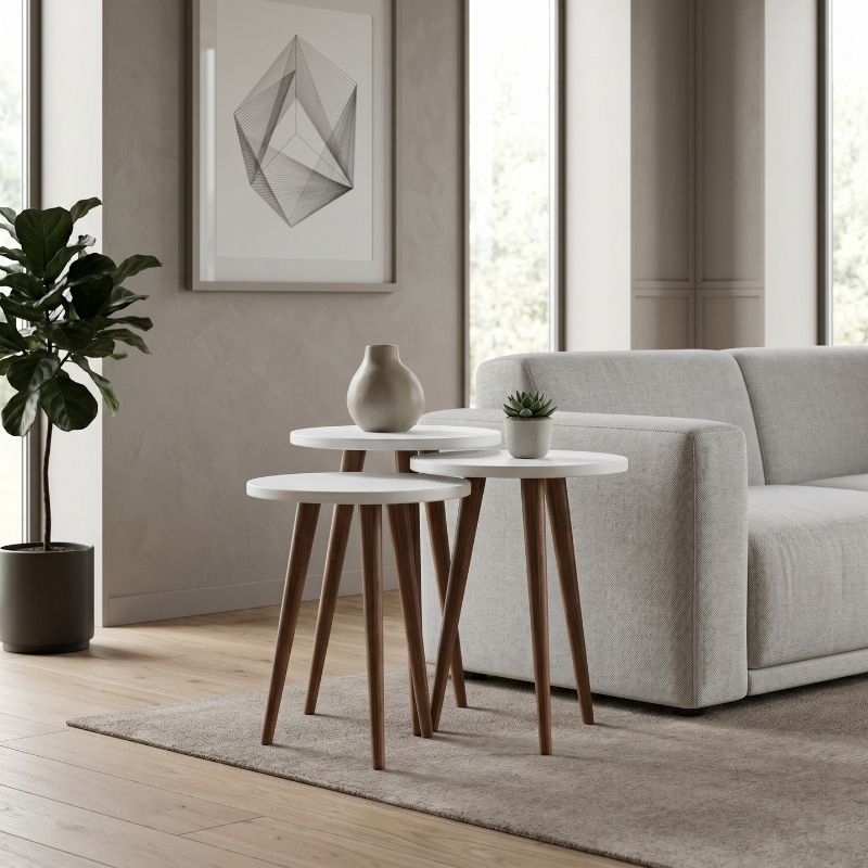 Τραπεζάκι βοηθητικό σετ 3 τμχ Cruz Megapap χρώμα λευκό Ø33×46εκ.