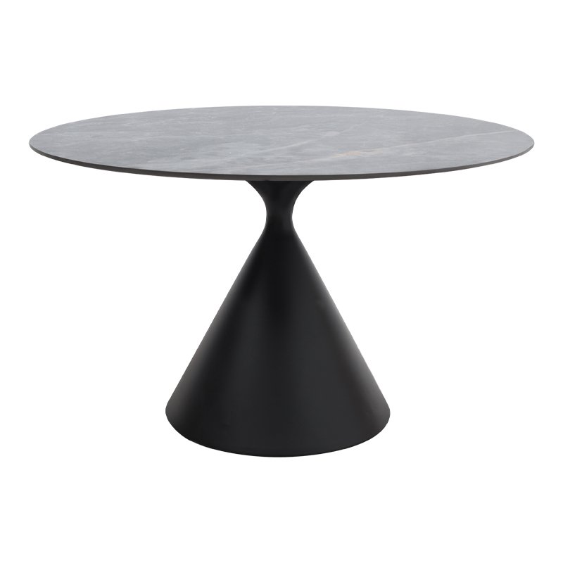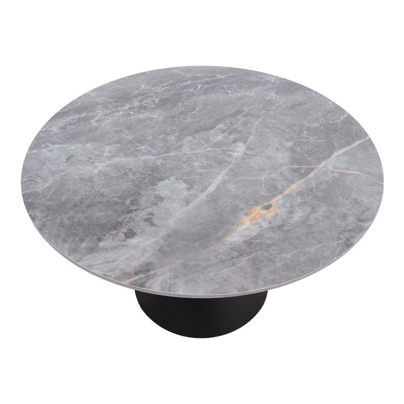 Τραπέζι Logan Megapap sintered stone – μέταλλο χρώμα γκρι εφέ μαρμάρου – μαύρο Ø120×72εκ.