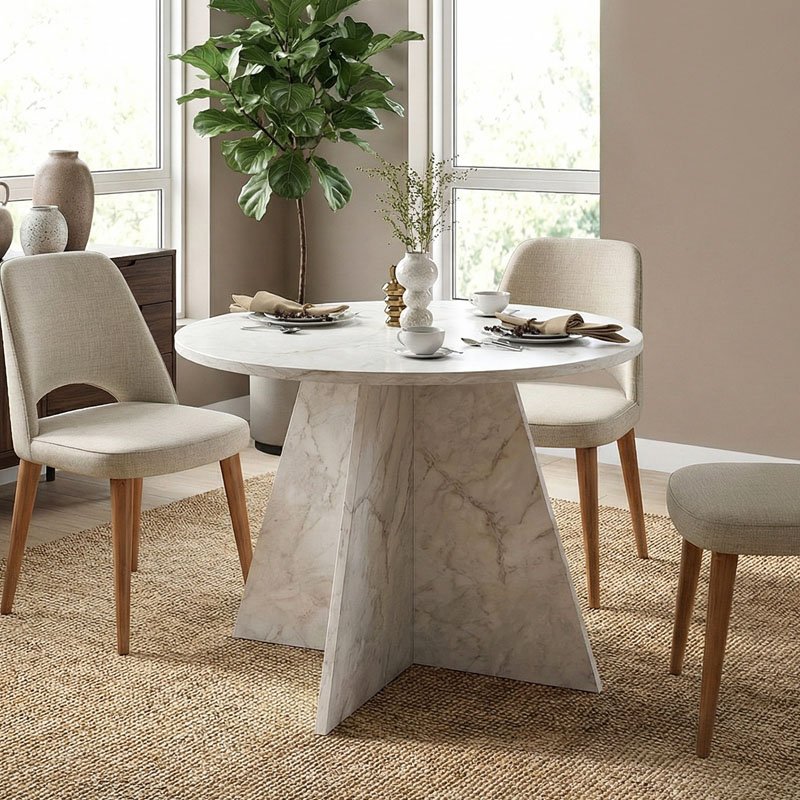 Τραπέζι Tailor Megapap χρώμα λευκό εφέ μαρμάρου Ø100×75,7εκ.