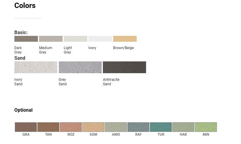 Είναι διαθέσιμο σε 4 αποχρώσεις από την γκρι παλέτα , σε διάφορα χρώματα από τους θερμούς και ψυχρούς τόνους του μπέζ, τερακότα, χακι, dusty blue.