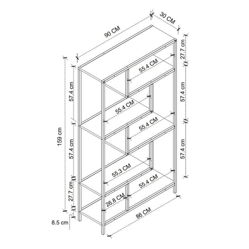 • Διαστάσεις: Μήκος 90 x Βάθος 30 x Ύψος 159 εκ.