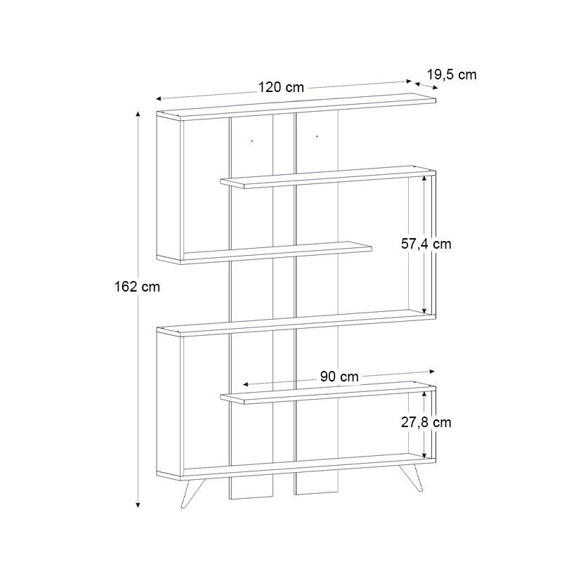 Βιβλιοθήκη μελαμίνης Rain Megapap χρώμα λευκό – καρυδί 120×19,5×162εκ.