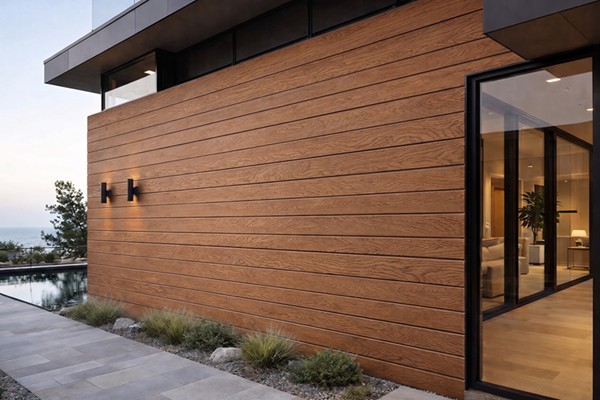 Η επιφάνεια διαθέτει ανάγλυφα νερά φυσικού ξύλου, προσφέροντας υψηλή αισθητική και φυσική εμφάνιση, χωρίς τις απαιτήσεις συντήρησης του πραγματικού ξύλου. Αποτελεί ιδανική επιλογή για επενδύσεις προσόψεων, οροφών, τοίχων σε βεράντες, κήπους, επαγγελματικούς χώρους και διακοσμητικές εφαρμογές.