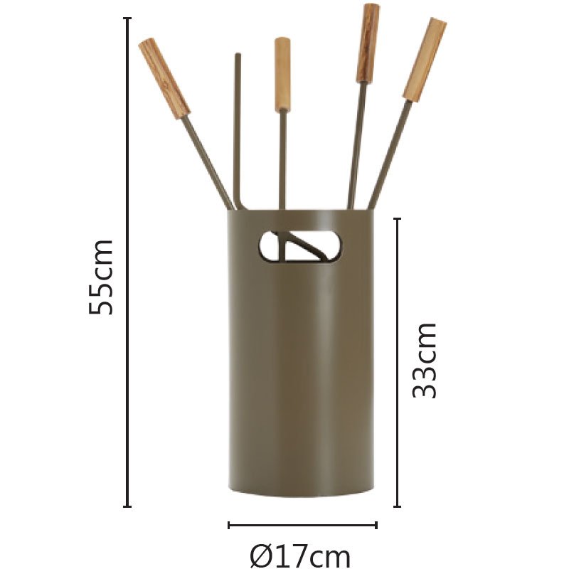 Ξύλο Ελιάς/Καφέ Ελιάς Εργαλεία Τζακιού Σε Κουβαδάκι Ζωγομετάλ Κ32-1240