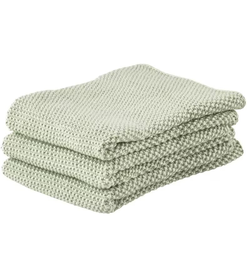 Αναβαθμίστε την καθημερινή σας ρουτίνα με τα πλεκτά πετσετάκια κουζίνας της zone denmark. με σύνθεση από 100% φυσικό βαμβάκι. Είναι απαλά. ανθεκτικά και χωρίς ίχνος χημικών ή μικροπλαστικών. ιδανικά για ένα πιο βιώσιμο και υγιεινό περιβάλλον κουζίνας. Το σετ περιλαμβάνει 3 τεμάχια σε διαστάσεις 27×27 εκατοστά και στο χρώμα της μέντας. Φυσική επιλογή. σχεδόν σαν χειροποίητα! Σετ 3 τεμαχίων Υλικό: 100% βαμβάκι Πλύσιμο στο πλυντήριο στους 60°c Χωρίς χημικά ή μικροπλαστικά Πρακτικά. ανθεκτικά και φιλικά προς το περιβάλλον
