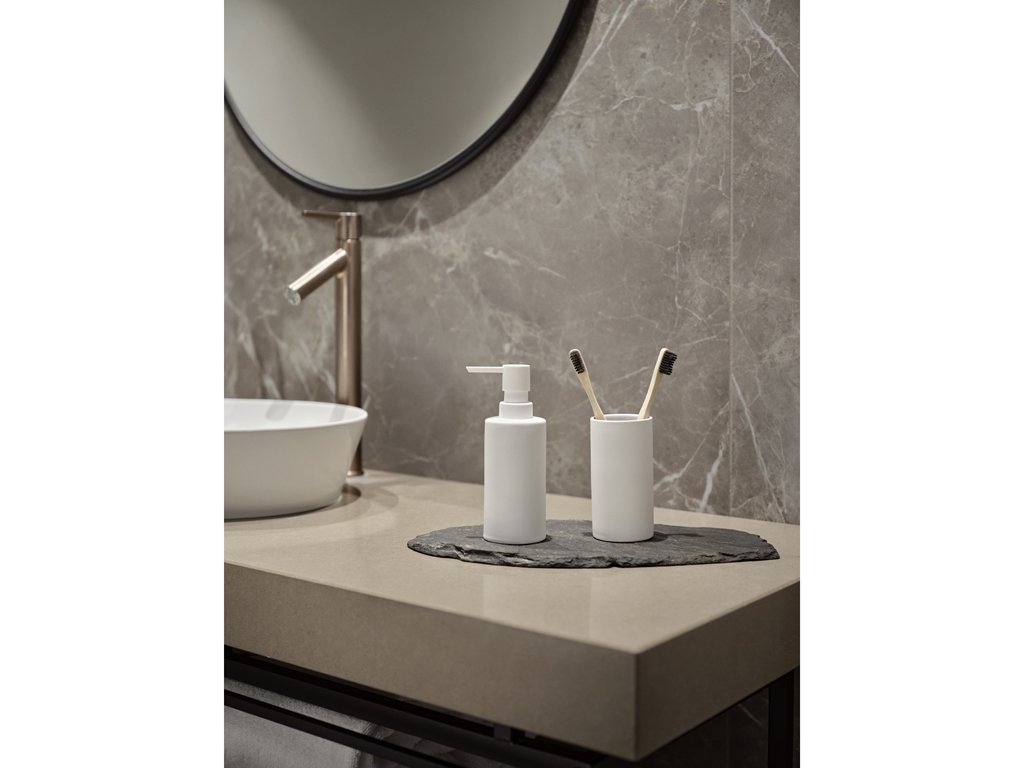 Η σειρά μπάνιου solo χαρακτηρίζεται από απόλυτα καθαρές γραμμές και μονόχρωμη αισθητική. συνδυάζοντας κομψότητα. λειτουργικότητα και διαχρονικό στυλ. Το ποτήρι για οδοντόβουρτσες solo. με ύψος 12.2 εκ.. προσφέρει πρακτικότητα χωρίς να θυσιάζει την αισθητική. Συνδυάζεται τέλεια με το δοχείο κρεμοσάπουνου. το πιγκάλ και τον κάδο με πεντάλ της ίδιας σειράς. για ένα αρμονικό αποτέλεσμα στον χώρο του μπάνιου. Μοντέρνος. μίνιμαλ σχεδιασμός Ματ φινίρισμα σε ουδέτερο λευκό χρώμα Ύψος: 12.2 εκ. Ιδανικό για οδοντόβουρτσες. οδοντόκρεμες ή μικροαντικείμενα Ταιριάζει απόλυτα με όλα τα αξεσουάρ μπάνιου της σειράς solo