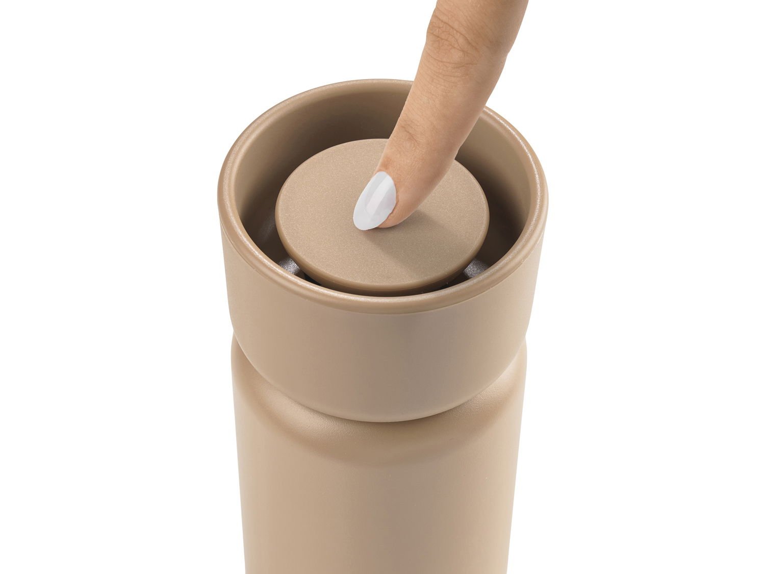Το θερμός singles της zone denmark είναι σχεδιασμένο για να ακολουθεί τον σύγχρονο. αστικό τρόπο ζωής – από τον πρωινό καφέ μέχρι την ενυδάτωση καθ’ όλη τη διάρκεια της ημέρας. Ξεχωρίζει για το έξυπνο και ευέλικτο design του καθώς διαθέτει δύο καπάκια – ένα πρακτικό καπάκι που ανοίγει εύκολα με ένα κλικ. ώστε να χρησιμοποιείται σαν κούπα και ένα βιδωτό καπάκι για απόλυτη στεγανότητα όταν μεταφέρεται σαν μπουκάλι. Θερμός διπλού τοιχώματος από ανοξείδωτο ατσάλι Διατηρεί τον καφέ ζεστό έως 12 ώρες και τα κρύα ροφήματα δροσερά όλη μέρα Περιλαμβάνει 2 καπάκια: ένα με κουμπί και ένα βιδωτό Περιμετρικό στόμιο 360° για άνετη χρήση από κάθε πλευρά Μαλακό τελείωμα στο χείλος για αίσθηση κανονικής κούπας Φαρδύ άνοιγμα για εύκολη προσθήκη πάγου. φακελάκια τσαγιού και καθαρισμό Στεγανό βιδωτό καπάκι – ιδανικό για μεταφορά σε τσάντα Σχεδιαστής: ve2