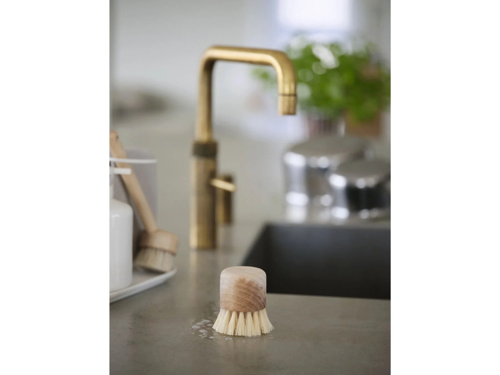 Η βούρτσα καθαρισμού πιάτων inu είναι σχεδιασμένη για να κάνει το πλύσιμο μια πιο φυσική και ευχάριστη εμπειρία. Κατασκευασμένη από ξύλο οξιάς με πιστοποίηση fsc™ (fsc-c166612) και επεξεργασμένη με φυσικό κερί μέλισσας. προσφέρει έναν απαλά εργονομικό και άνετο χειρισμό. Ο κυλινδρικός άξονας εξασφαλίζει σταθερό. άνετο κράτημα. ενώ η γωνία ανάμεσα στη κεφαλή και τον άξονα είναι απλώς ιδανική — θα το καταλάβετε από το πρώτο φλιτζάνι που θα πλύνετε. Στο άκρο υπάρχει στρογγυλή οπή. ώστε να μπορείτε να προσθέσετε κορδόνι και να την κρεμάτε. Το φυσικό. οργανικό της σχήμα και τα υλικά που επιλέχθηκαν αρμονικά. συνδέονται με τα υπόλοιπα προϊόντα της σειράς. Ένα καθημερινό εργαλείο. με σεβασμό στο περιβάλλον και έμφαση στη λεπτομέρεια.