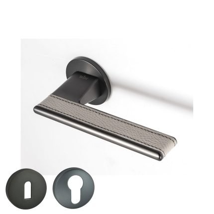 Πόμολο Πόρτας No 84267 Ανθρακί ματ – Λευκό Δέρμα Ροζέτα