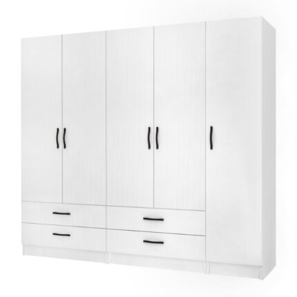 Original price was: 540,00 €.459,00 €Η τρέχουσα τιμή είναι: 459,00 €.Ντουλάπα ρούχων Ricardo Megapap πεντάφυλλη με συρτάρια χρώμα λευκό 200×51,8×181εκ.