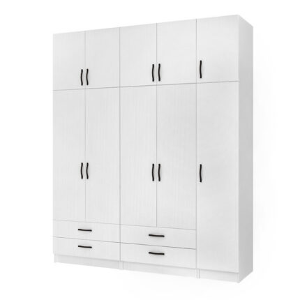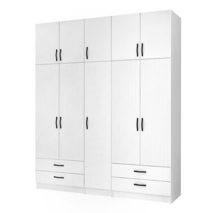 Original price was: 585,00 €.495,00 €Η τρέχουσα τιμή είναι: 495,00 €.Ντουλάπα ρούχων Ricardo Megapap εξάφυλλη με συρτάρια χρώμα λευκό 240×51,8×181εκ.