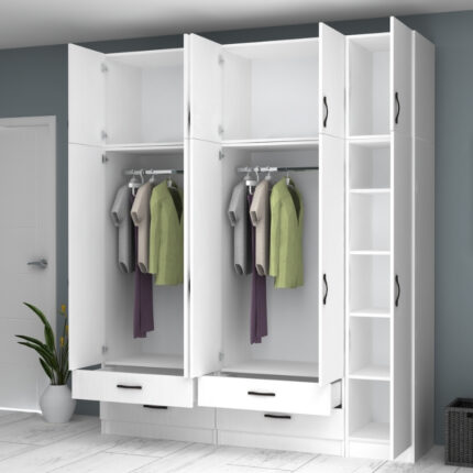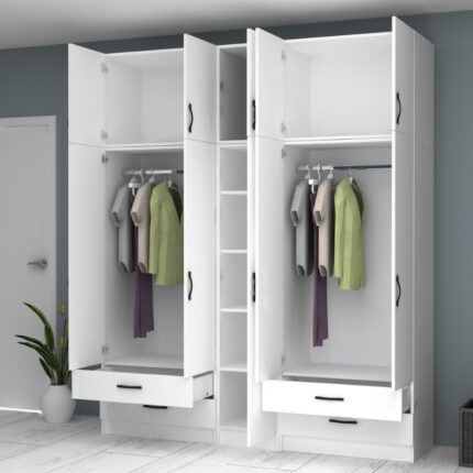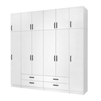 Original price was: 1.036,00 €.880,00 €Η τρέχουσα τιμή είναι: 880,00 €.Ντουλάπα ρούχων Ricardo Megapap εξάφυλλη με πατάρι και συρτάρια χρώμα λευκό 240×51,8×240εκ.