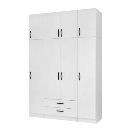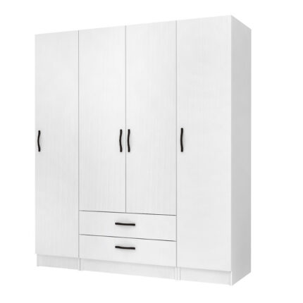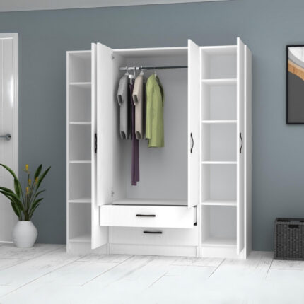 Original price was: 745,00 €.635,00 €Η τρέχουσα τιμή είναι: 635,00 €.Ντουλάπα ρούχων Ricardo Megapap τετράφυλλη με πατάρι και συρτάρια χρώμα λευκό 160×51,8×240εκ.