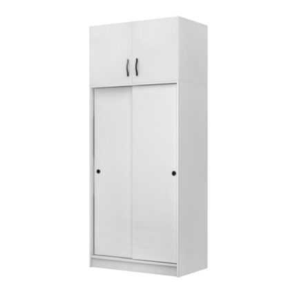 Original price was: 500,00 €.425,00 €Η τρέχουσα τιμή είναι: 425,00 €.Ντουλάπα ρούχων Regio Megapap δίφυλλη συρόμενη με πατάρι χρώμα λευκό 100x60x240εκ.