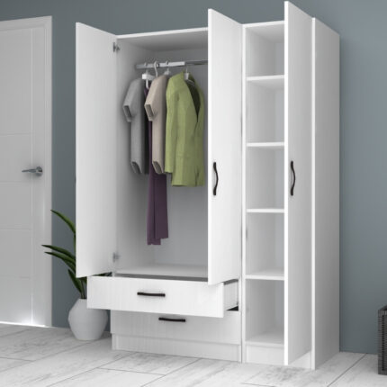 Ντουλάπα ρούχων Ricardo Megapap τρίφυλλη με συρτάρια χρώμα λευκό 120×51,8×181εκ.