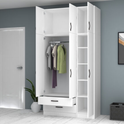 Ντουλάπα ρούχων Victoria Megapap δίφυλλη με πατάρι και συρτάρια χρώμα λευκό 100x60x240εκ.