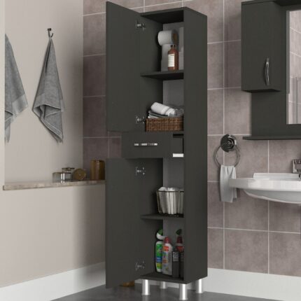 Original price was: 97,00 €.79,00 €Η τρέχουσα τιμή είναι: 79,00 €.Ντουλάπι κουζίνας – μπάνιου Montana Megapap χρώμα ανθρακί 59,4×31,5×140εκ.