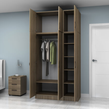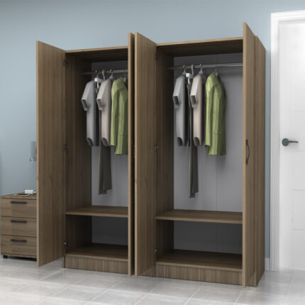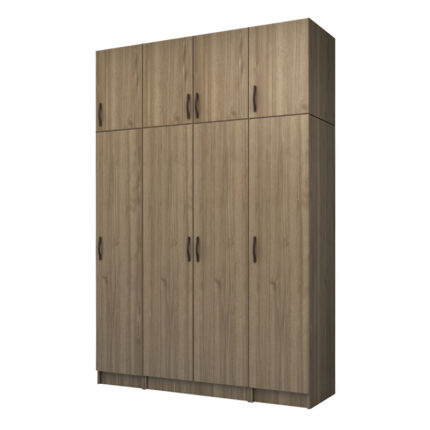 Original price was: 549,00 €.464,00 €Η τρέχουσα τιμή είναι: 464,00 €.Ντουλάπα ρούχων Vivian Megapap τετράφυλλη με πατάρι χρώμα καρυδί 160×51,8×240εκ.