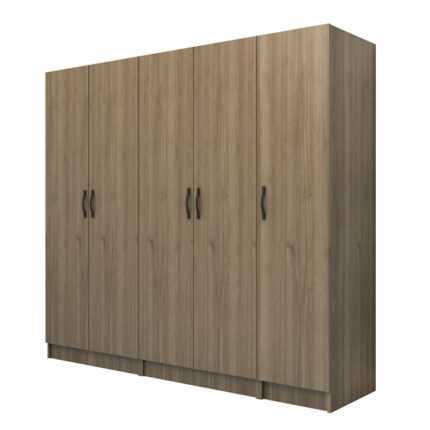 Original price was: 162,00 €.135,00 €Η τρέχουσα τιμή είναι: 135,00 €.Ντουλάπα ρούχων Vivian Megapap πεντάφυλλη με πατάρι χρώμα καρυδί 200×51,8×240εκ.