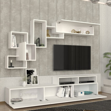 Original price was: 145,00 €.119,00 €Η τρέχουσα τιμή είναι: 119,00 €.Σύνθεση τηλεόρασης Tulip Megapap χρώμα λευκό 160×29,5×160εκ.