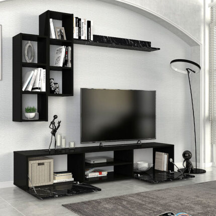 Original price was: 210,00 €.175,00 €Η τρέχουσα τιμή είναι: 175,00 €.Σύνθεση τηλεόρασης Duana Megapap χρώμα μαύρο εφέ μαρμάρου – μαύρο 180x38x35,7εκ.