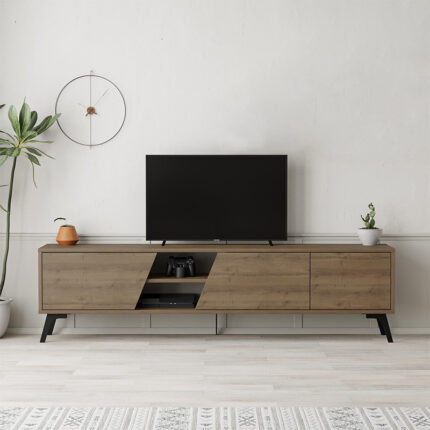 Original price was: 260,00 €.215,00 €Η τρέχουσα τιμή είναι: 215,00 €.Έπιπλο τηλεόρασης Amedeo Megapap από μελαμίνη χρώμα καρυδί 180x40x50εκ.