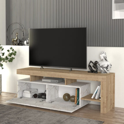 Original price was: 199,00 €.159,00 €Η τρέχουσα τιμή είναι: 159,00 €.Έπιπλο τηλεόρασης Acnes Megapap χρώμα λευκό εφέ μαρμάρου – sapphire oak 160x40x53εκ.
